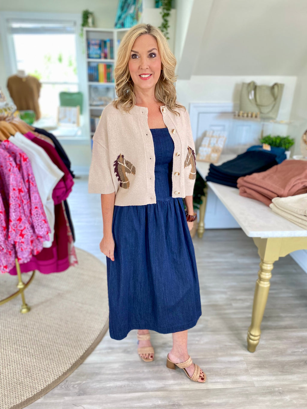 Denim Midi Dress with Adjustable Straps
