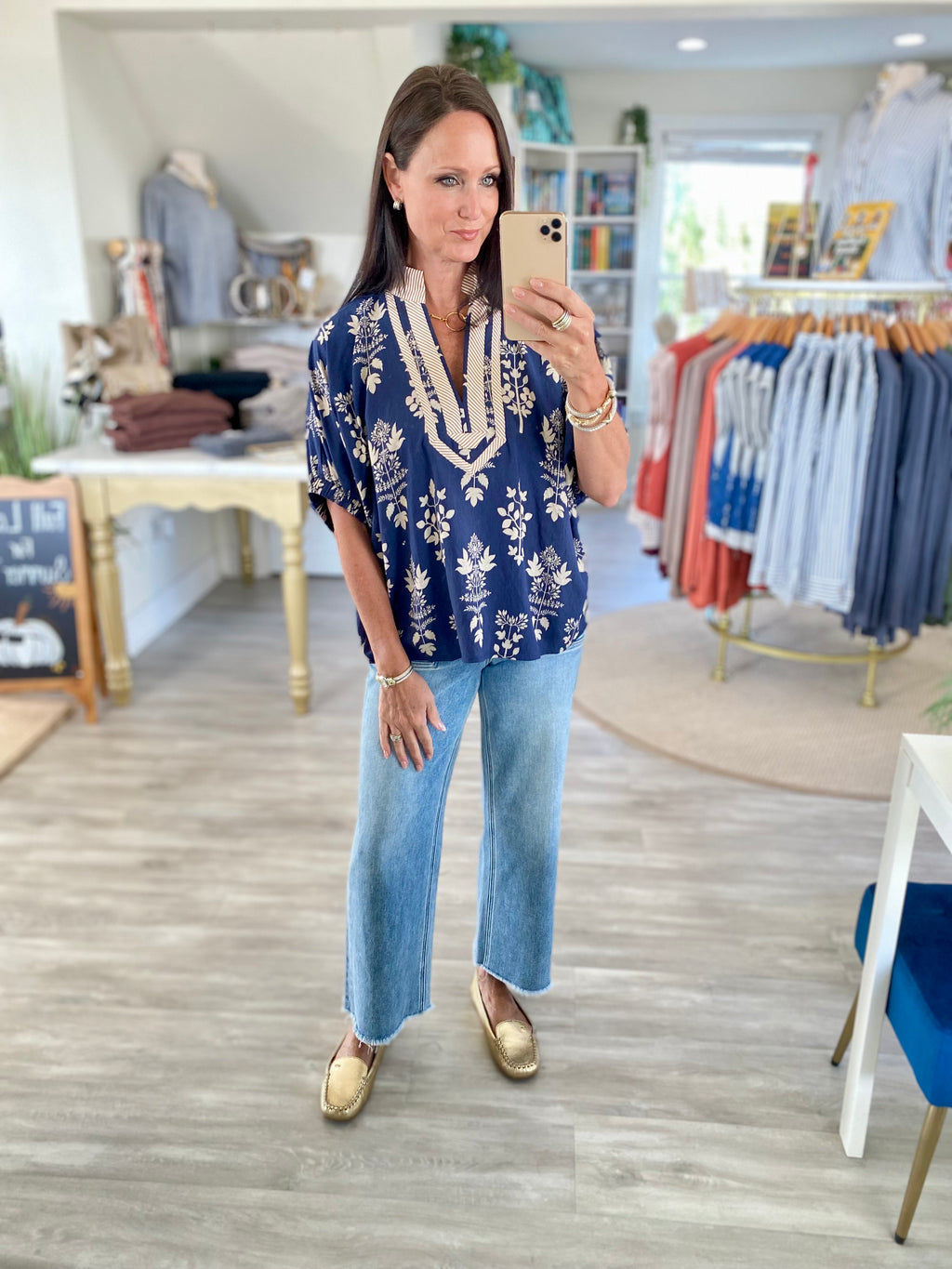 Embroidered Caftan Inspired Short Sleeve Top