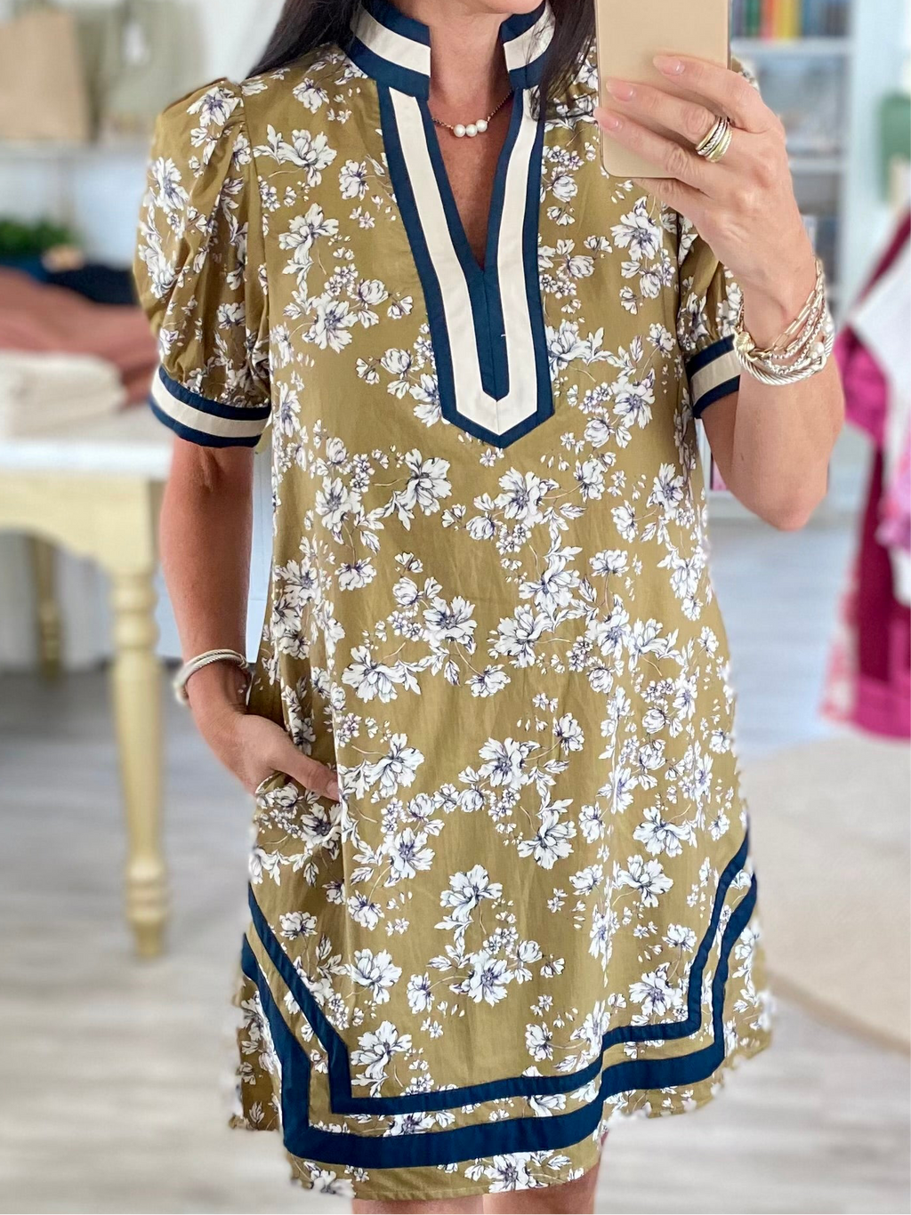 Botanical Floral Collared Shift Dress