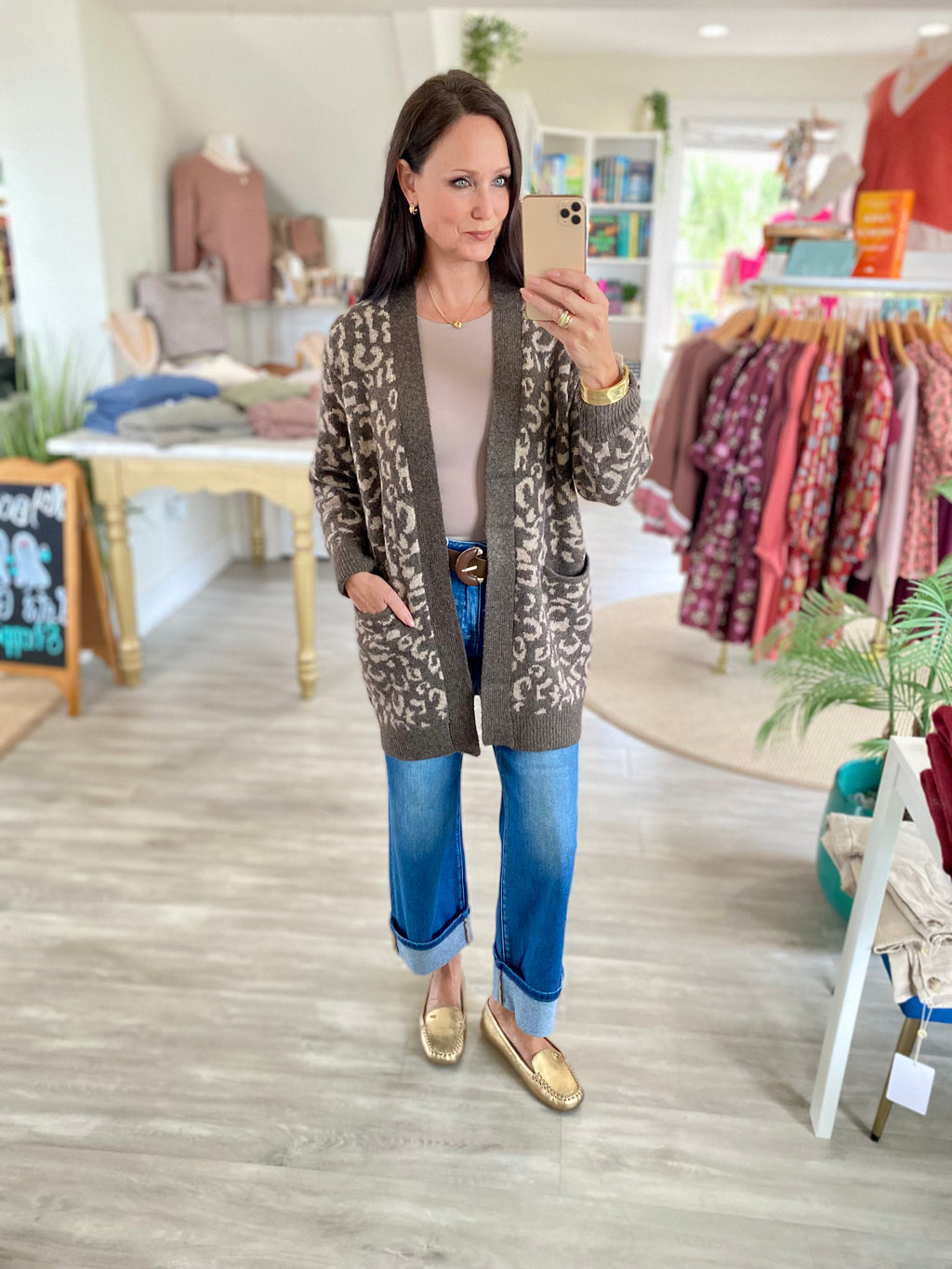 Animal Print Open Hip Length Cardigan