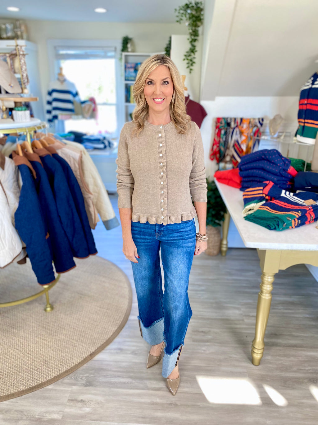 Button-Up Ruffle Knit Cardigan