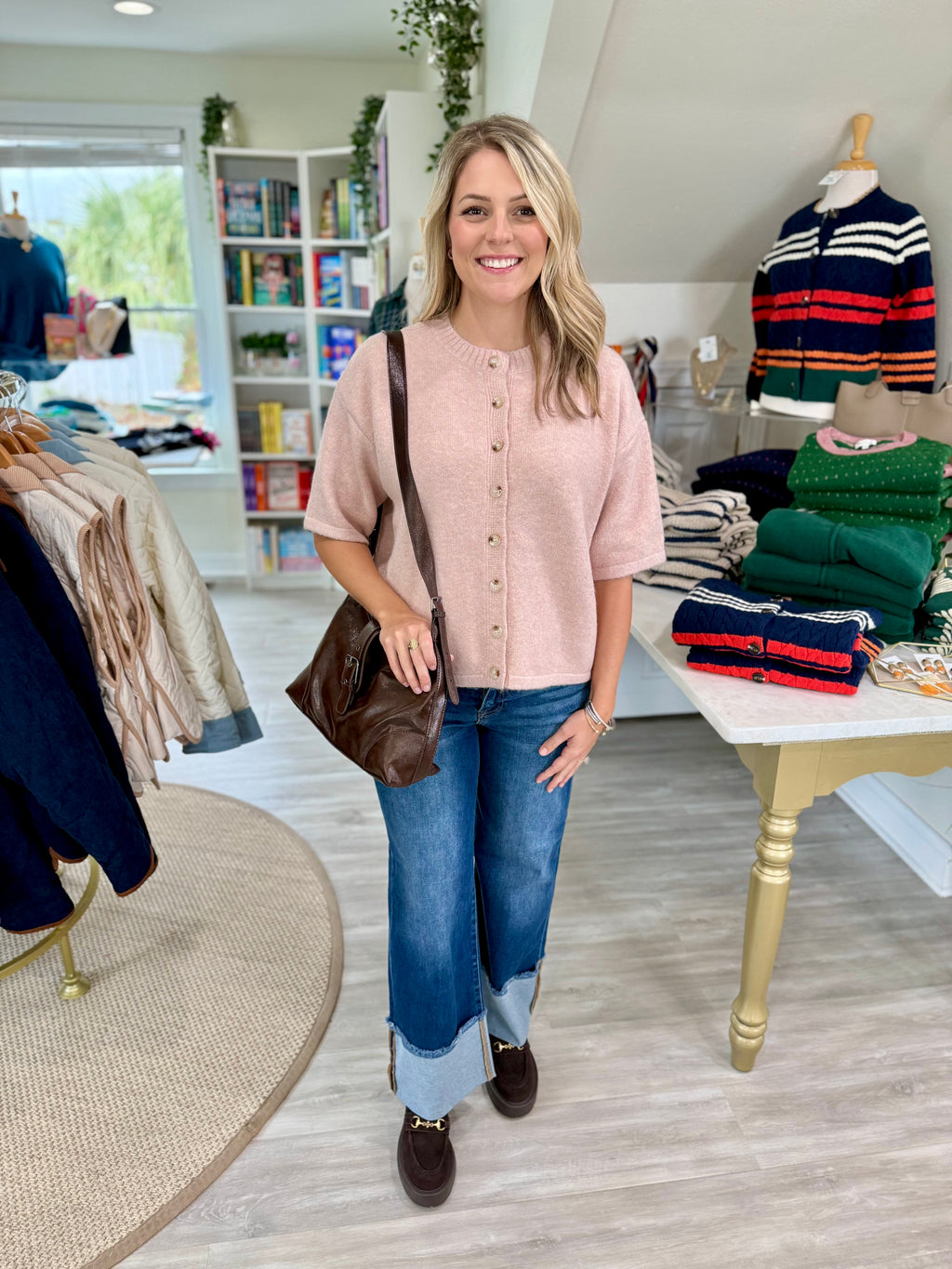 Brushed 1/2 Sleeve Button-up Sweater