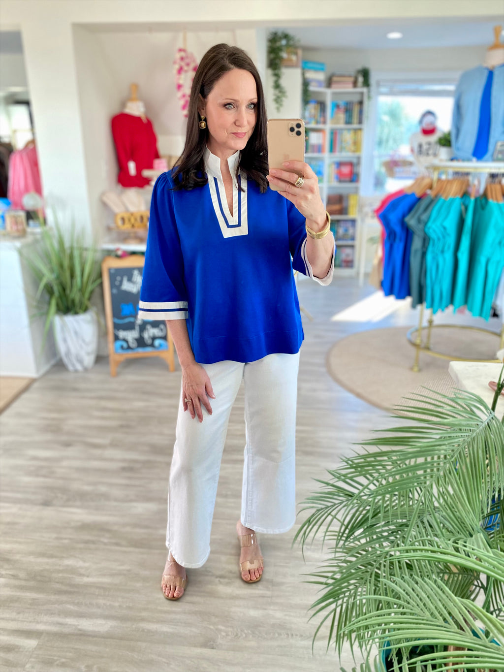 Smocked Yoke Button Front Cotton Top