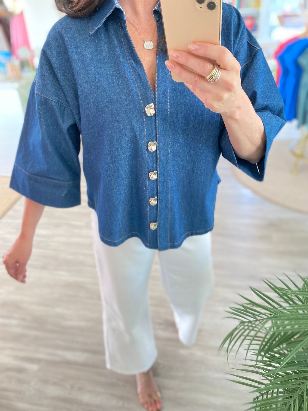 Tencel Chambray Puff Sleeve Button Down