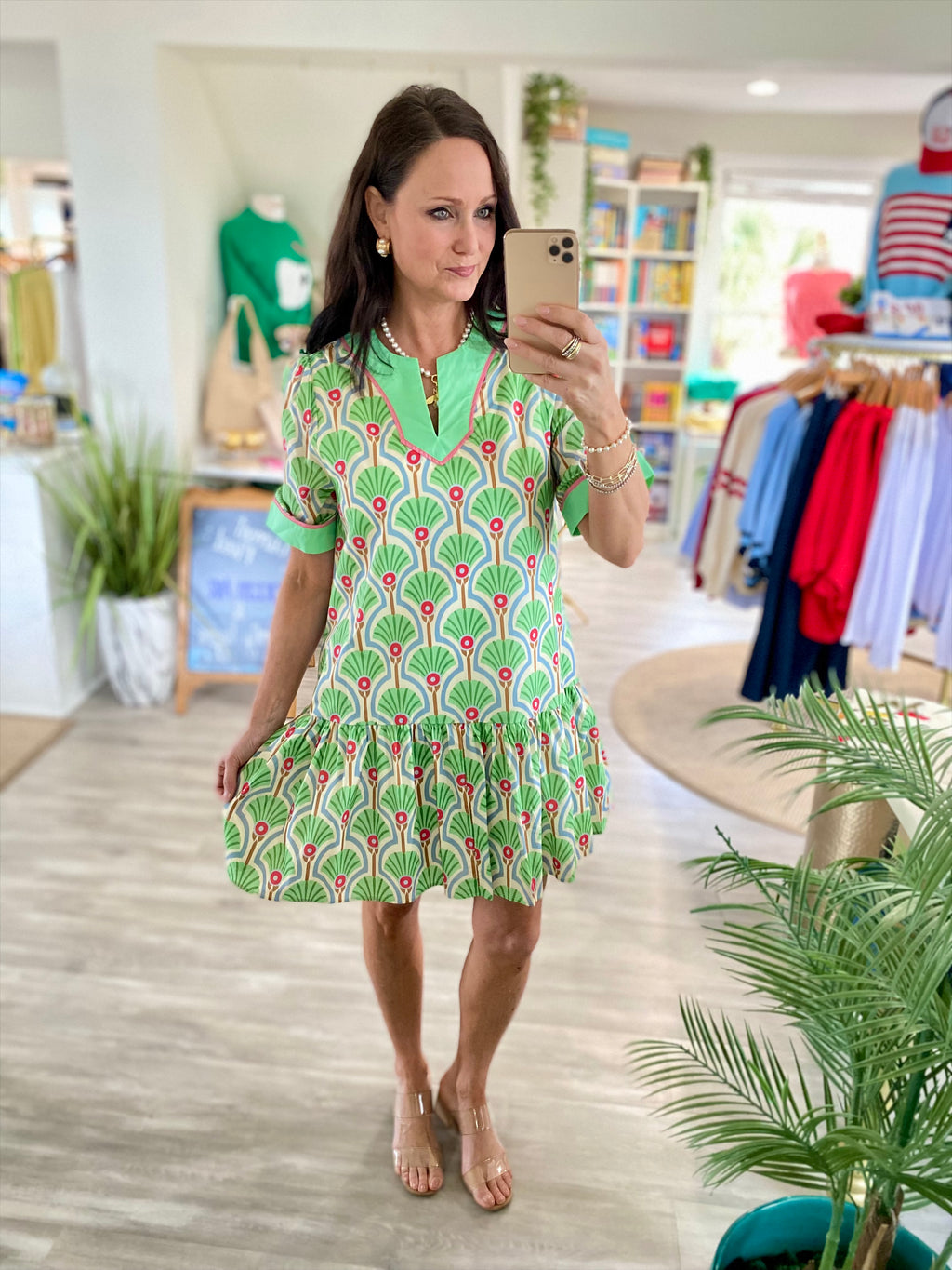 Woven Print Mini Dress with Contrast Detail
