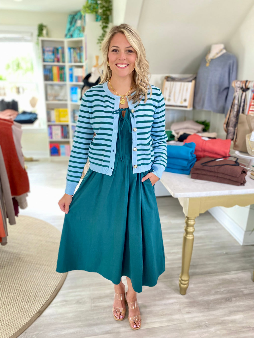 Floral Jacquard Button Front Tie Waist Midi Dress