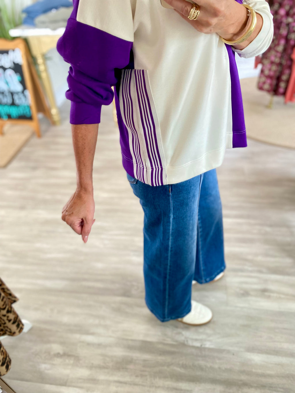 Mixed Stripe Mock Neck Long Sleeve Sweater