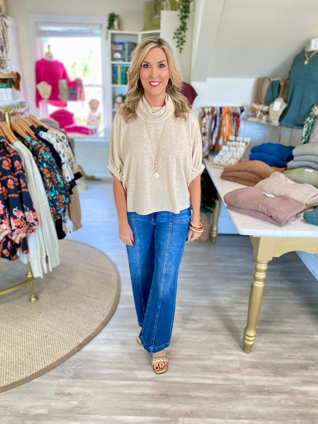 Solid Knit Dropped Shoulder Flare Sleeve Top