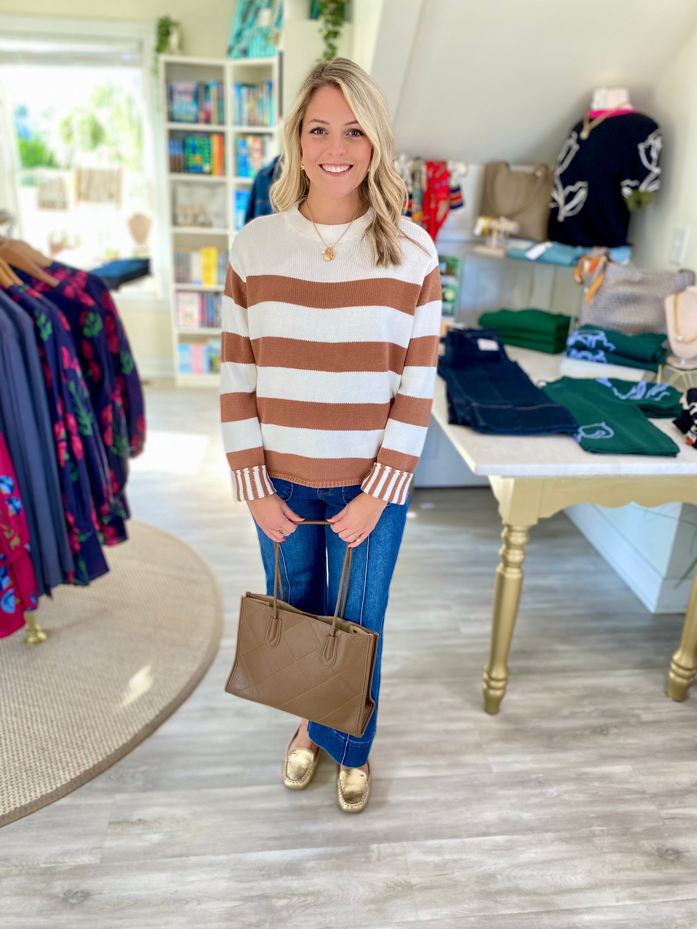 Mixed Stripe Mock Neck Long Sleeve Sweater
