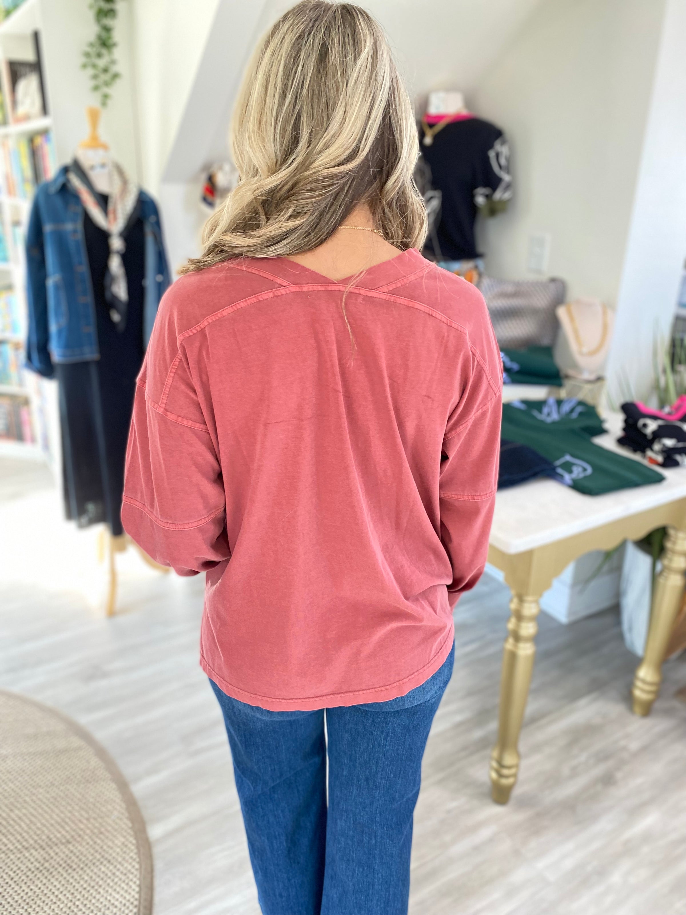 Pigment Wash V Neck Long Sleeve Tee
