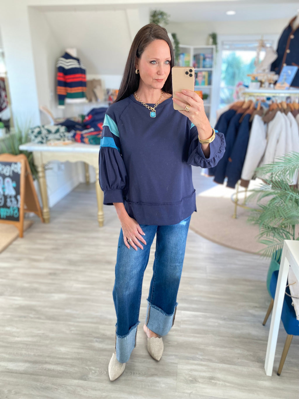 3/4 Contrast Band Stripe Sleeve Knit Sweatshirt