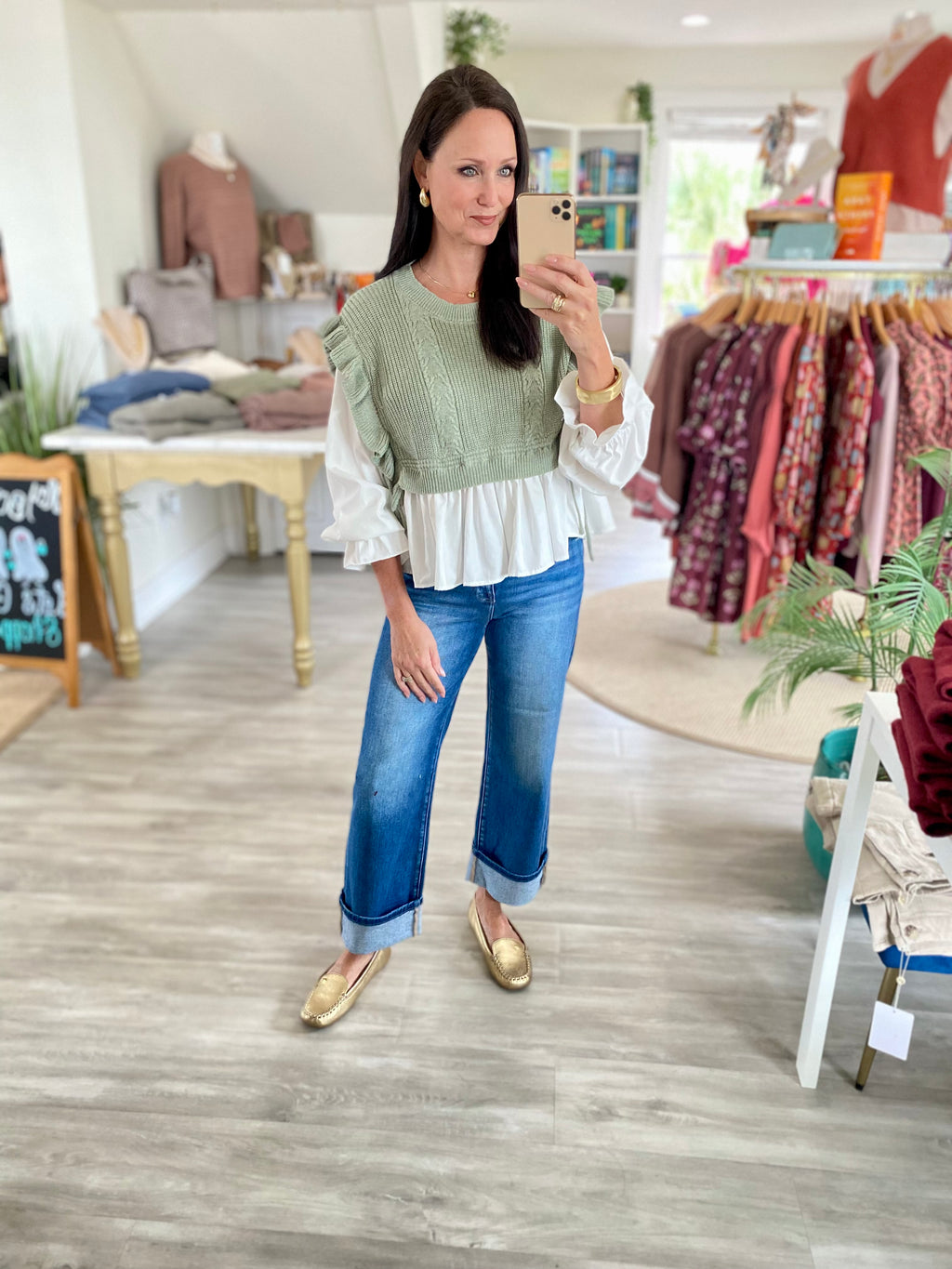 Ribbed Raw Edge Boat Neck Long Sleeve Top