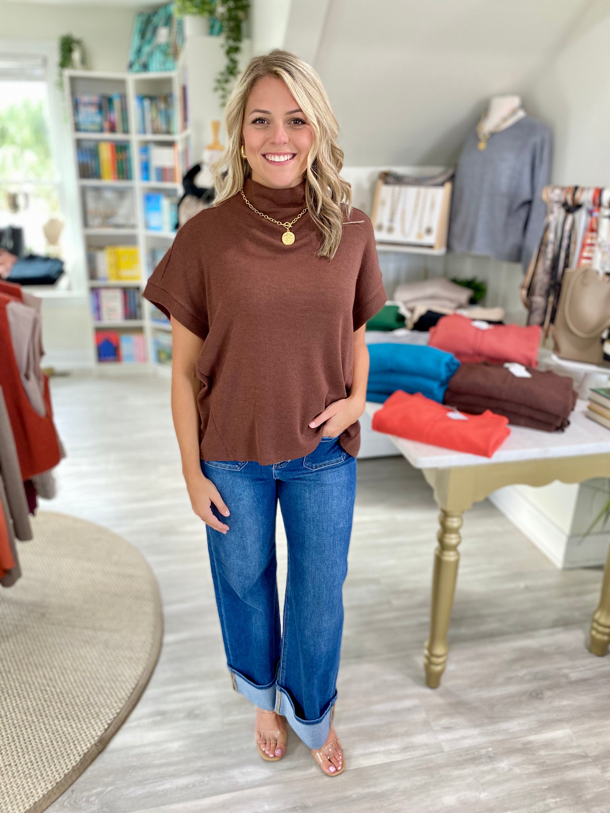 Experience effortless style with the Short Sleeve Mock Neck Knit Top. Made from lightweight, non-sheer knit fabric, this unlined top offers breathable comfort throughout the day. The sleek mock neck and chic rolled cuffs add subtle sophistication, making it a perfect choice for both casual outings and polished ensembles. Embrace versatility without sacrificing comfort.